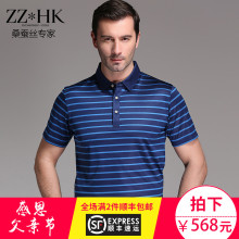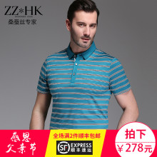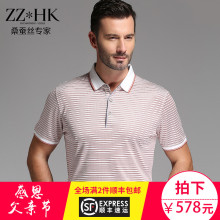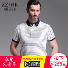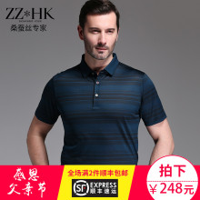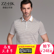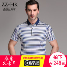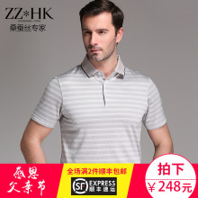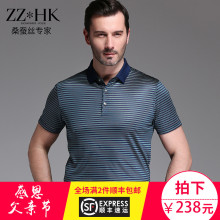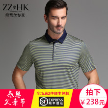 ZZHK桑蚕丝短袖T恤100%真丝体恤中年男士条纹翻领Polo衫夏季t桖