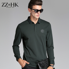 ZZHK商务男装秋季POLO衫中年男士长袖T恤2017纯色秋装翻领爸爸装