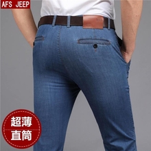AFS JEEP超薄中老年牛仔裤男高腰夏季薄款商务宽松直筒天丝男裤子