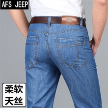 AFS JEEP超薄牛仔裤男夏季薄款宽松直筒弹力高腰中老年天丝裤子软