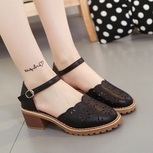 春夏季镂空凉鞋女英伦复古圆头中跟防滑洞洞鞋中空粗跟休闲包头鞋