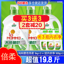 正品妈妈壹选天然皂液洗衣液倍柔清香3kg*3+内衣手洗3瓶消毒液2瓶