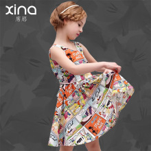 2017春夏季新款席那印花童装连衣裙女童欧美儿童公主裙春秋季裙子