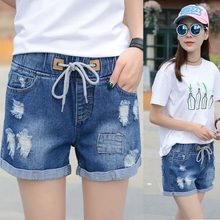 夏季新款牛仔短裤女中高腰显瘦学生韩版宽松大码松紧腰带抽绳热裤