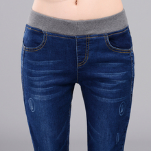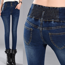 秋冬韩版松紧腰牛仔裤女高腰大码长裤修身弹力铅笔裤显瘦小脚女裤