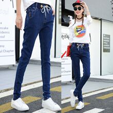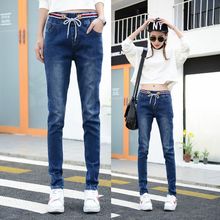 2017春季新款宽松紧腰带牛仔裤女装垮裤哈伦裤显瘦学生韩版小脚裤