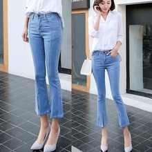 2017春季新款微喇个性显瘦高弹喇叭阔腿瘦身九分9分韩版牛仔裤女