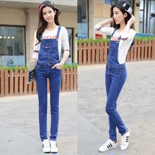 2017春秋韩版学生可拆卸牛仔背带裤女修身显瘦藏肉小脚连体长裤潮