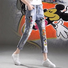 米奇大码哈伦裤牛仔裤小脚垮裤春秋季女款韩版宽松bf风卡通九分裤