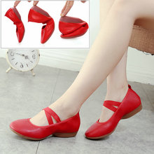 春夏季新款透气广场舞蹈鞋女式真皮软底透气红色增高跳舞鞋