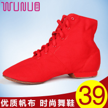 舞诺帆布爵士舞鞋高帮女式芭蕾舞鞋红色练功鞋舞蹈鞋软底男爵士靴