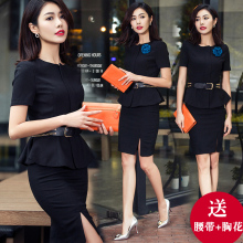 艾尚臣新款职业套装女夏装修身美容院工作服商务短袖韩版正装工装