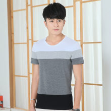 纯棉夏装拼接男士短袖T恤韩版修身半袖体恤夏季圆领大码男装衣服
