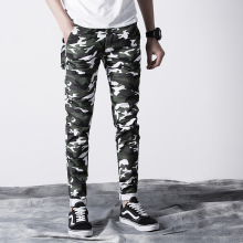 夏季高弹力修身小脚裤迷彩裤男士多口袋工装裤休闲裤韩版长裤子潮