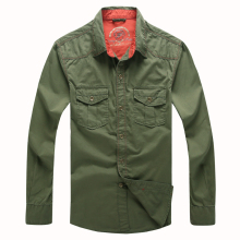 衬衫男长袖潮秋装男装军装迷彩明星款洗水复古多口袋工装衬衣男潮