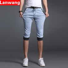 蓝忘夏季新款高弹力牛仔短裤男韩版牛仔七分裤弹力中裤马裤7分裤