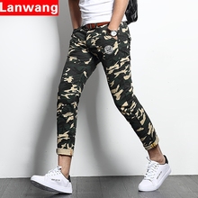 夏季薄款运动休闲裤军装迷彩裤男九分裤修身松紧腰弹力小脚裤