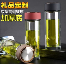 双层玻璃杯透明带盖过滤泡花茶杯水杯子定做口杯印字logo定制