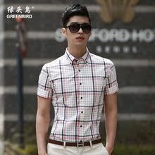 绿头鸟2016春夏季装男士纯棉衬衫短袖修身韩版商务休闲格子衬衣潮