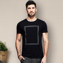 iFashion男士短袖T恤弹力紧身T恤男夏装圆领几何方框印花修身T恤