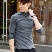 iFashion弹力面料男长袖T恤纯棉加厚半高领纯色紧身打底衫男式T恤