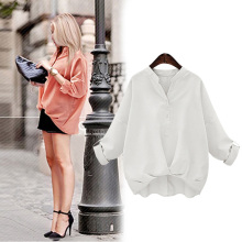 冷艳公主2017春装欧美V领中长款衬衫女长袖时尚宽松学院风休闲