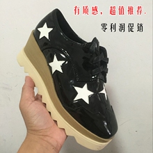 李小璐姚笛同款春秋星星鞋女方头2016新款韩版松糕鞋坡跟系带单鞋