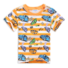 男童短袖T恤2016新款纯棉肩扣圆领卡通图案套头男婴童T恤