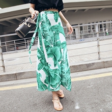 2017夏天新款雪纺热带植物印花半身裙沙滩裙 海边度假 长裙女式