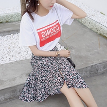 2017韩版裙子女夏高腰a字雪纺印花碎花不规则中长款鱼尾裙半身裙