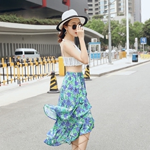 2017夏天新品波西米亚沙滩度假长裙碎花蛋糕裙中长款雪纺半身裙女