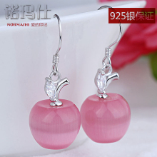 粉晶猫眼石可爱苹果925银耳环 日韩版女时尚甜美百搭耳钉圣诞礼物