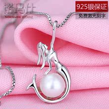 性感美人鱼天然淡水珍珠项坠 925银饰项链日韩版女款时尚百搭吊坠