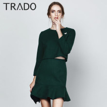 欧美2016秋冬新款修身包臀荷叶摆连衣裙OL套装气质短裙两件套