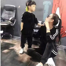 亲子装秋冬运动套装一家三口全家装母子女加绒加厚两件套卫衣儿童