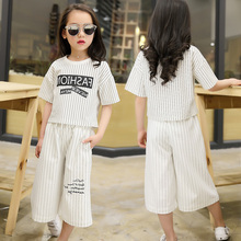 女童阔腿裤套装中大童2017夏季新款韩版儿童条纹短袖两件套宽松潮