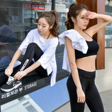 健身服女套装春夏运动文胸外搭罩衫假两件短裤瑜伽服健身房跑步服