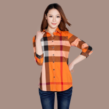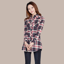 2017春装新款女士衬衣韩版修身英伦风大码纯棉中长款格子衬衫女