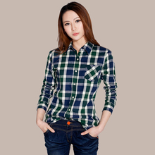 春装新款2017格子衬衫女长袖新款英伦风加厚修身大码打底格子衬衣