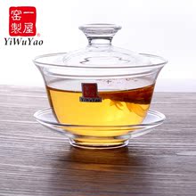 一屋窑盖碗杯碟组泡茶杯不烫手三才碗耐热玻璃三炮台透明功夫茶具