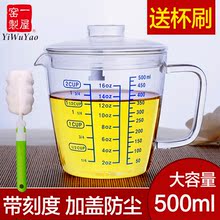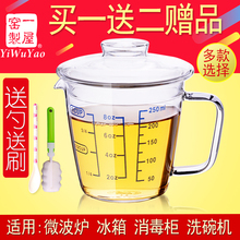 一屋窑耐热玻璃量杯带刻度牛奶杯水杯玻璃杯加盖透明微波炉加热