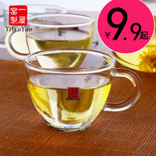 一屋窑玻璃杯耐热玻璃品茗杯碧瑶花茶杯带把手小杯咖啡杯单杯茶具