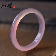 沁暧 天然粉玉髓手镯 紫玛瑙芙蓉玉镯加厚圆镯 水晶 可爱正招桃花