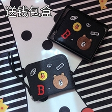 韩国line布朗熊贴布刺绣可爱卡通帆布零钱包卡包拉链钱包 包邮!