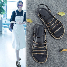 凉鞋女夏季2017新款罗马绑带平底露趾学生百搭简约一字扣平跟女鞋