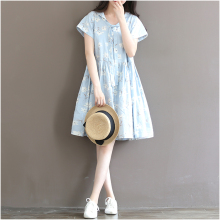 原创夏季新款日系休闲印花连衣裙文艺娃娃裙圆领百搭连衣裙女宽松