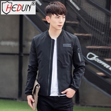 赫盾2017春季新款短款修身青年棒球服男士夹克外套薄款纯色上衣潮