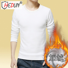 赫盾春季简约基本款纯棉长袖T恤男韩版修身加厚加绒纯色打底衫潮