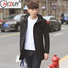 赫盾2017春秋英伦青少年修身连帽风衣外套男中长款纯色学生帽衫潮