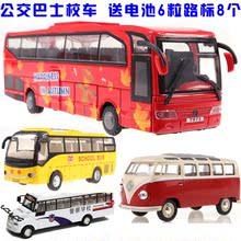 包邮公交巴士合金车模型双层大巴车校巴校车警车长途客车儿童玩具